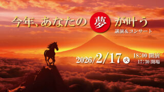 新しい年を迎え、「今年、あなたの夢が叶う」講演&コンサートを開催することになりました。この数年、物価高、国際情勢など、心穏やかならぬ日が続いていますが、2026年こそは、一人ひとりの「夢」が叶い、世界が笑顔と感謝で溢れることを心から祈ってい...